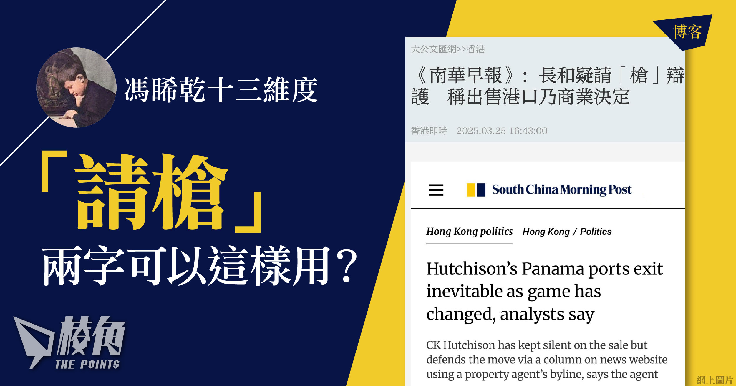 近年,我很多朋友都說不大看新聞了,尤其是香港新聞。從某個角度看也是好事,因為這年頭看新聞,真有可能學壞中文。比如說,這兩天各大港媒都在轉述大公、文匯對長和的一個錯謬批評,即「請槍」,試看以下標題:
