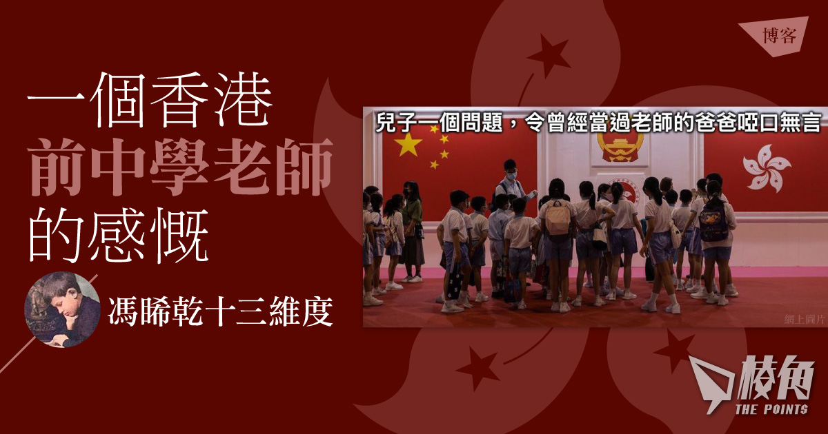 朋友說,孩子唱国歌是沒問題的,但當他聽到兒子質疑他不是中国人時,他的確呆了,「我不禁想起文革時紅衛兵批鬥父母的場景。」他自己曾是教師,現在卻為孩子在學校所受的教育而煩惱,真是諷刺。