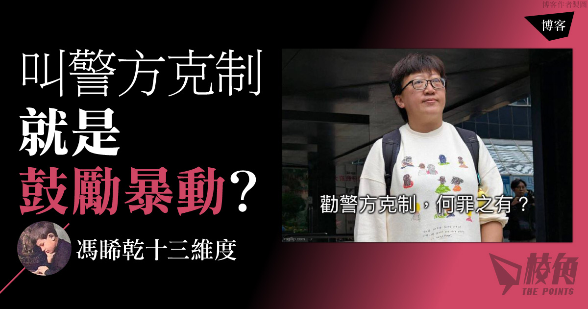 鍾明新指陳虹秀「現場大聲叫喊警方處事不當的指控,藉此鼓勵及支持集結人士去繼續他們的行動」(第81段),我看了幾次,也想不出有何邏輯(看得出的話,我也許應該要去看看醫生)。警方會開槍和射催淚彈,當時根本是人盡皆知的事實,示威者何需陳虹秀用「阿媽係女人」的說話來「鼓勵」?示威者聽到警察可能開槍和衝上來,難道會覺得這是一種打氣的話?發神經!叫警方克制就是鼓勵暴動,問你攞貼士即係打劫你?