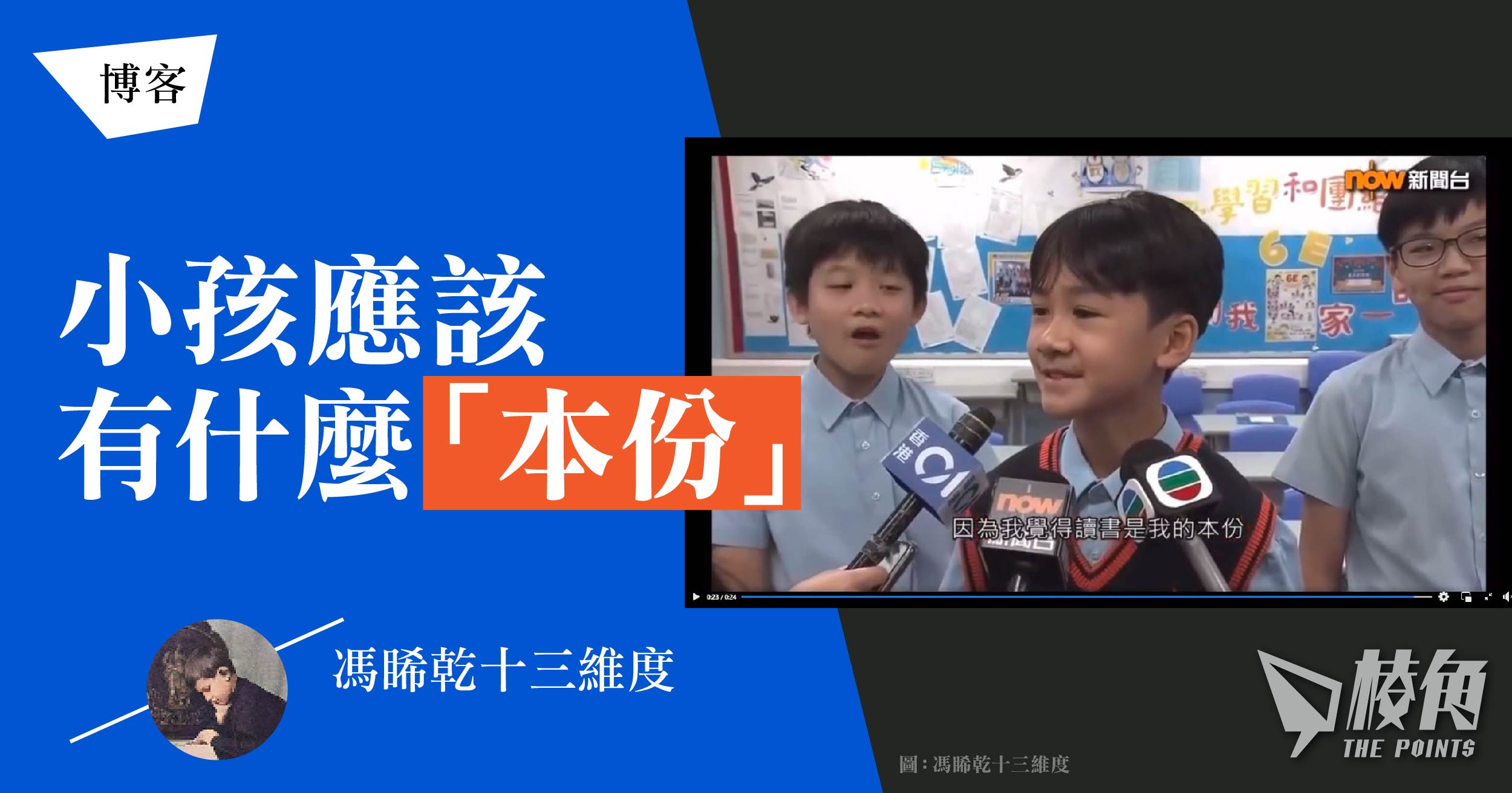 十多歲的小孩子該視什麼為「本份」,其實是值得大人好好思考的問題。若你問十二歲的我,我應該只會答「最緊要好玩」——甚至於到了今天,我也許亦沒有更好的答案。