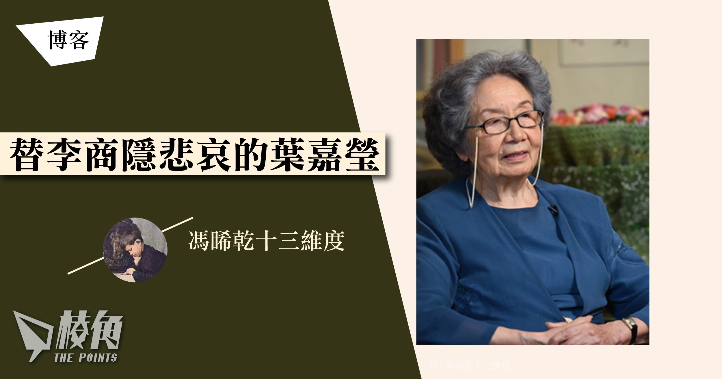 「板輿」不是什麼冷僻典故,從前的讀書人一望就明白了。以古典文學為專業,卻連這樣的典故也解錯,我認為難以接受。葉嘉瑩又說,看到李商隱為其他人代筆,寫了很多駢文,「就非常替李商隱悲哀,這麼好的才華,這麼好的文筆,去給那些長官寫這種無聊的文字,真是非常悲哀的事情。」但李商隱能寫出現在大家擊節讚賞的詩,恰恰有賴他的駢文造詣——錢鍾書就提過他以駢文為詩——葉嘉瑩反而覺得悲哀?