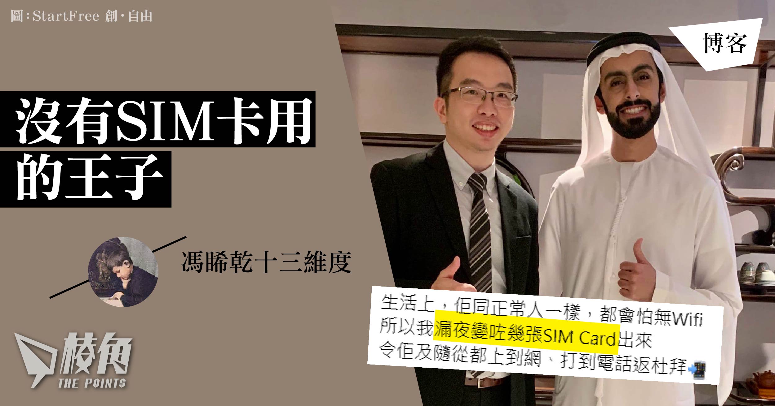 對不起,我真係笑到噴飯。堂堂杜拜王子,吹到身家有數以十億,手機居然沒有漫遊,本尊和隨從甚至連SIM卡也沒有,要靠萍水相逢的網主「漏夜」張羅,「隨從」的工作都做埋呀陰功,不知道王子最後有沒有付SIM卡錢給網主呢?