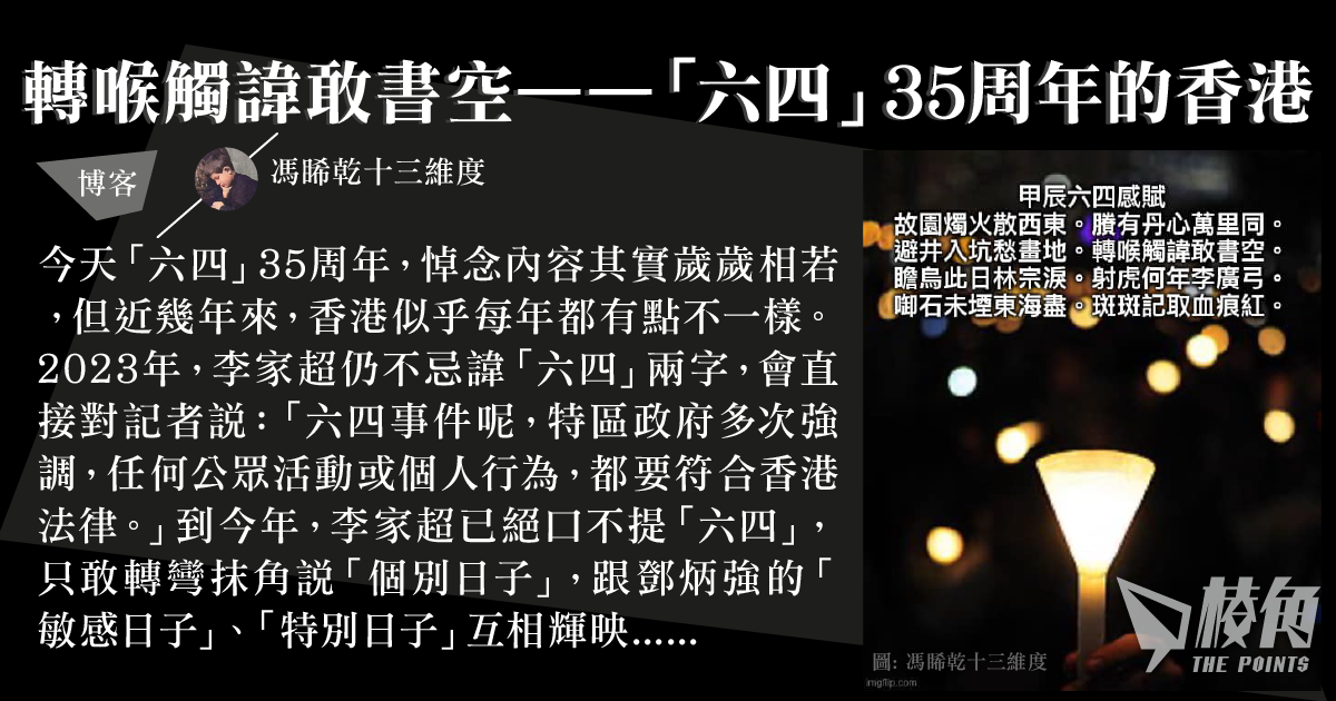 【馮睎乾十三維度】轉喉觸諱敢書空——「六四」35周年的香港