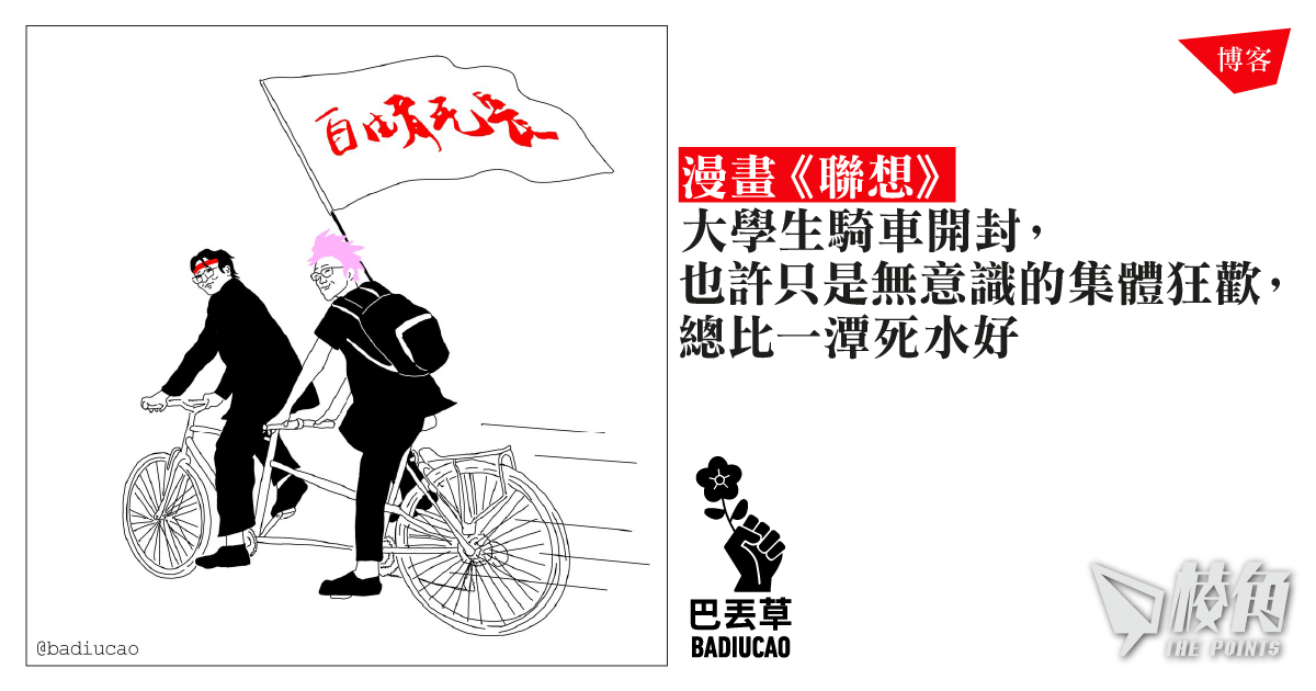 主頁 博客 【Badiucao 巴丟草... 【Badiucao 巴丟草】漫畫《聯想》 2024年11月11日 大學生騎車開封, 也許只是無意識的集體狂歡, 總比一潭死水好 作者: 巴丟草Badiucao 政治漫畫家/人權分子/反共反極權/反種族主義 支持我們:https://www.ls1.points-media.com/supports/