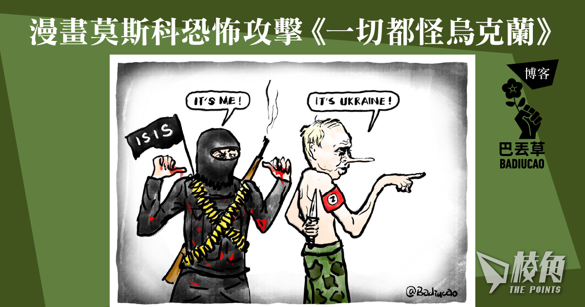 主頁 博客 【Badiucao 巴丟草... 【Badiucao 巴丟草】漫畫莫斯科恐怖攻擊《一切都怪烏克蘭》 2024年03月26日 漫畫莫斯科恐怖攻擊《一切都怪烏克蘭》 作者: 巴丟草Badiucao 政治漫畫家/人權分子/反共反極權/反種族主義 支持我們:https://www.ls1.points-media.com/supports/