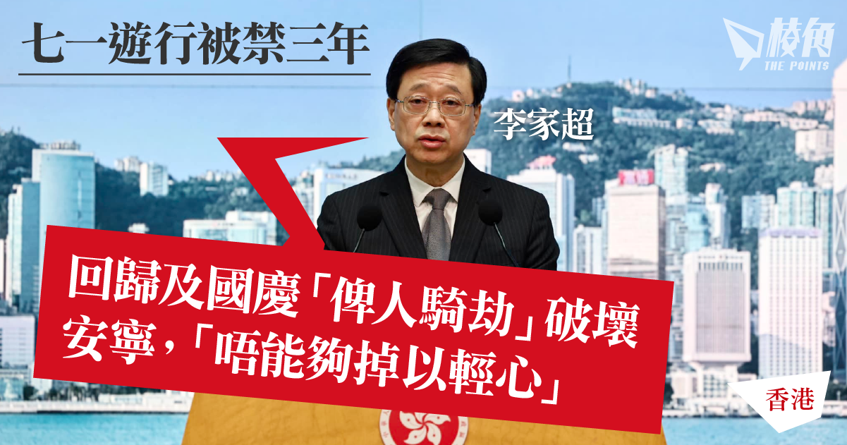 七一遊行被禁三年 李家超:回歸及國慶「俾人騎劫」破壞安寧,「唔能夠掉以輕心」