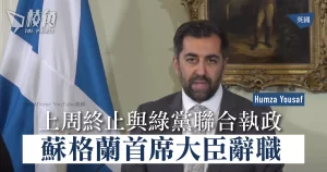 上周終止與綠黨聯合執政 蘇格蘭首席大臣辭職