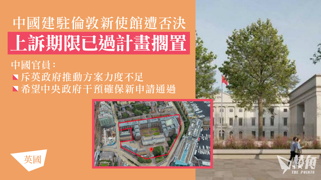 中國建駐倫敦新使館遭否決 上訴期限已過計畫擱置