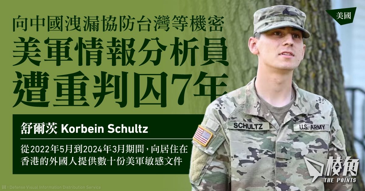 《法新社》報道,獲授權最高機密安全許可的美國陸軍中士舒爾茨(Korbein Schultz),去年3月在位於肯塔基州與田納西州交界的坎貝爾堡(Fort Campbell)軍事基地被捕。