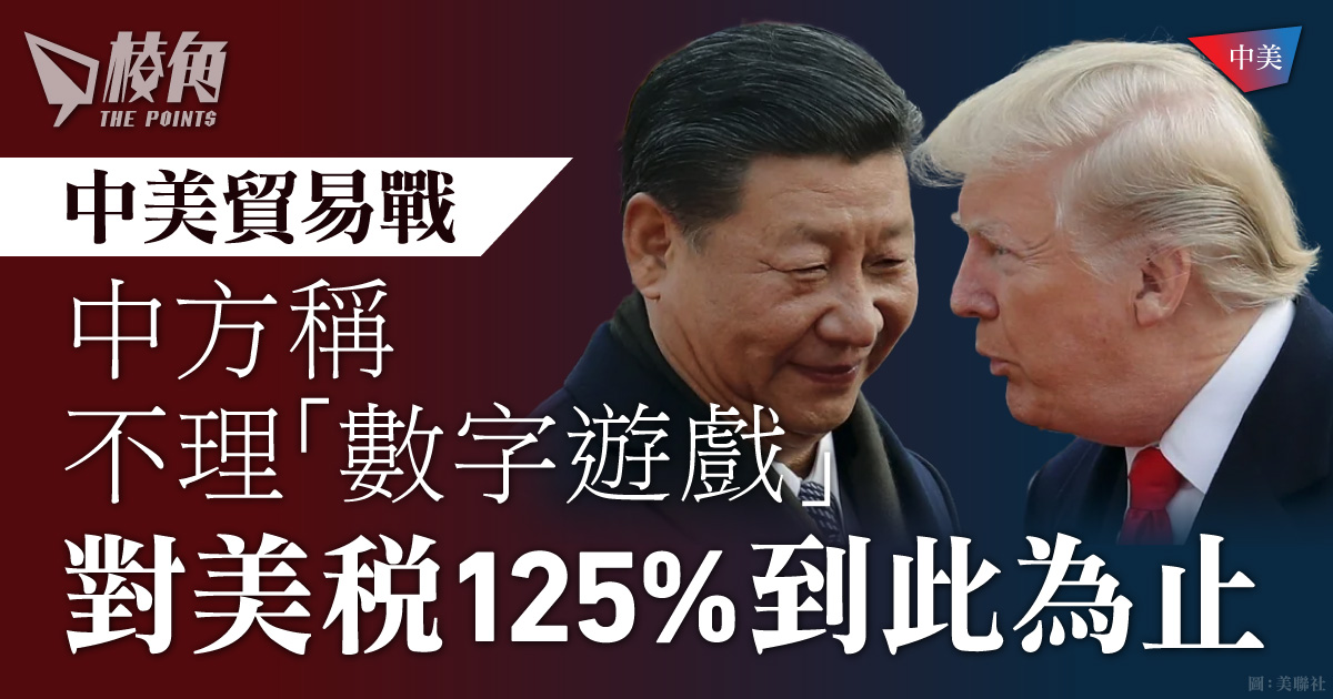 中國國務院關稅稅則委員會同日發表公告,將對美國進口商品關稅由原本的84%大幅調升至125%,涵蓋能源、農業設備及電子產品等,4月12日生效。中方以「數字遊戲」形容「對等關稅」,又指美國商品在現行稅率下「已無市場接受可能性」,警告若美方進一步升級關稅行動,中方「將不予理會」。