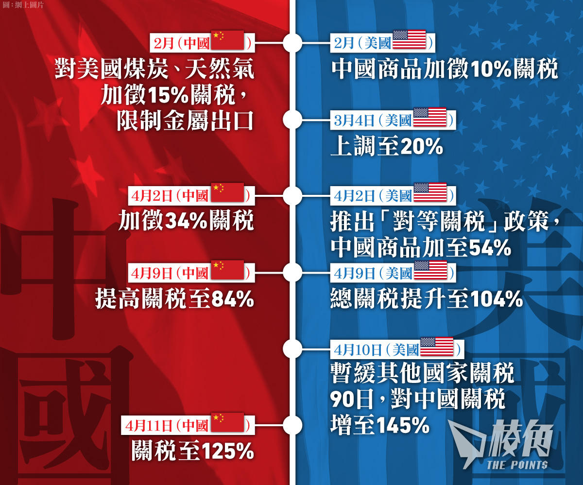 特朗普自今年初上任後簽署多項行政命令,四度上調中國商品關稅,從原本的10%飆升至最高 145%。北京今次以「不予理會」反擊,意味著雙方關稅戰已進入「極限施壓」階段。