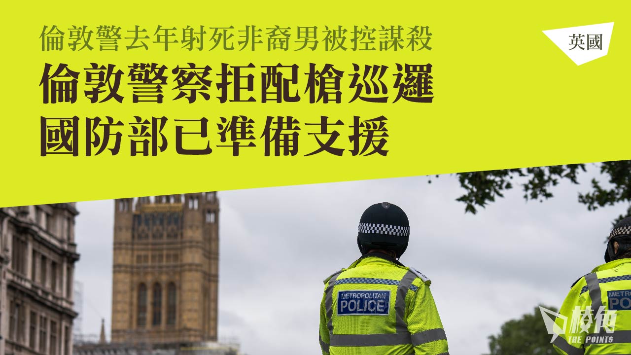 去年,一名24歲非裔男子被追捕後遭開槍射死,事件一直發酵,有批評指該名警察對手無寸鐵的青年使用不必要武力,質疑涉案警察種族歧視。他其後被控謀殺罪,逾百名倫敦都市警察(MET Police) 交還槍械許可證,拒絕配槍巡邏。倫敦都市警察廳要求國防部提供反恐支援,國防部宣布軍隊已戒備,可隨時協助倫敦警方執行反恐工作。