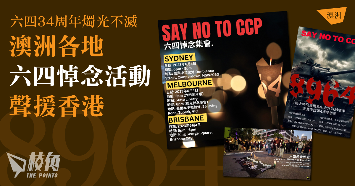 不過,海外悼念活動則依舊遍地開花,世界各地均有悼念活動。澳洲各主要城市均有舉辦悼念活動,個別活動同時紀念香港抗爭運動4周年,詳情如下: