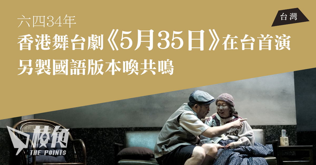 周日是「六四」34周年,今年國際特赦組織台灣分會與曉劇場合作,將香港舞台劇「5月35日」在台灣上演,於6月2日至6月4日共演出6場,當中5場為國語版本,1場為粵語讀劇。曉劇場導演鍾伯淵表示,台灣上演的版本有調整,另外亦邀請有台灣口音的演員以國語演出,希望令台灣觀眾更有共鳴。