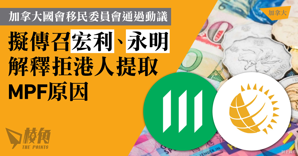 - 加拿大國會一個移民委員會通過動議,研究加拿大港人在提取MPF時遇到的問題