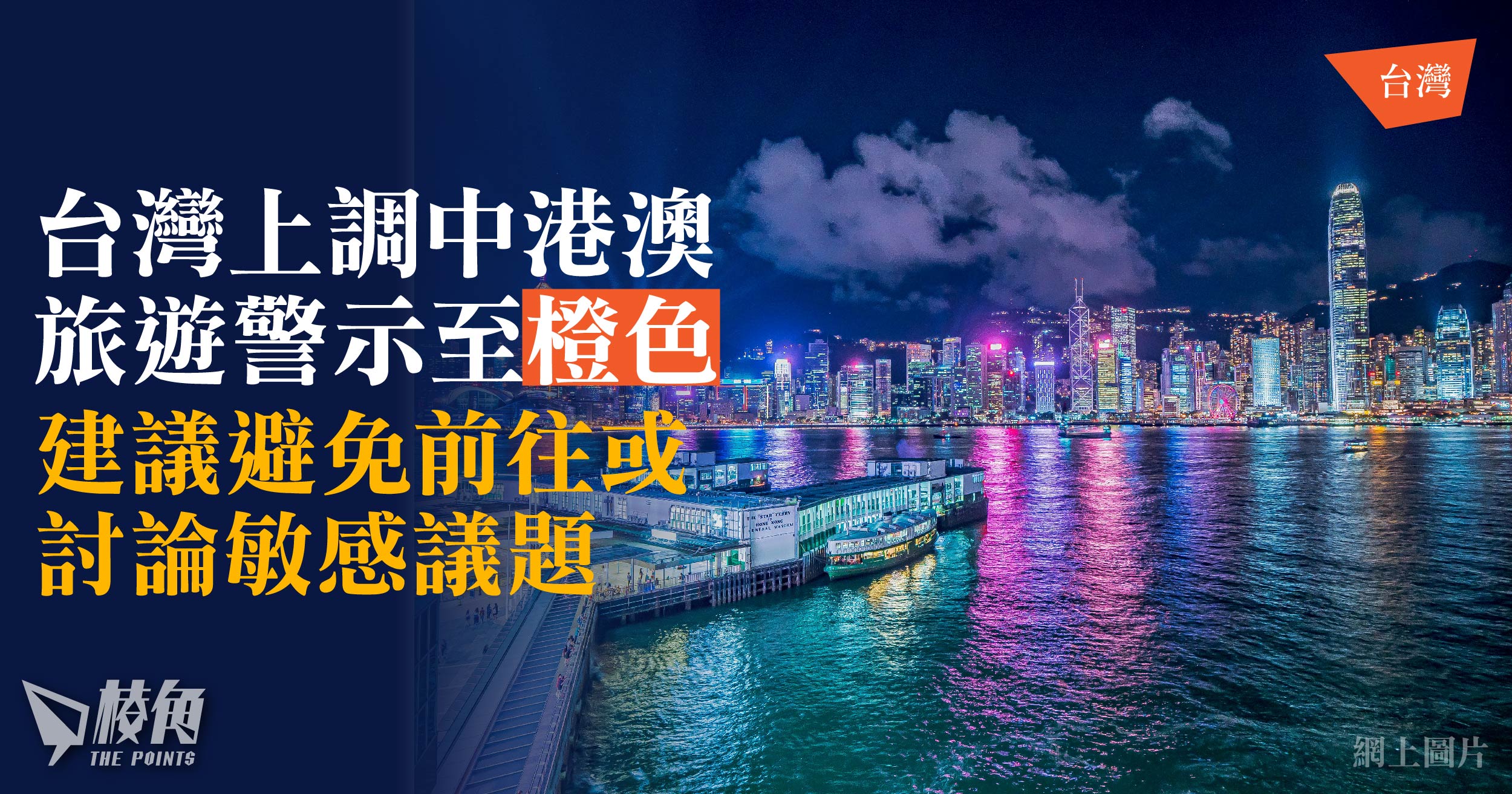 - 台灣陸委會即日起上調對中國、香港及澳門旅遊警示至第二高級別的橙色