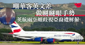 嘲華客英文差 做瞇瞇眼手勢 英航兩空姐歧視亞裔遭解僱