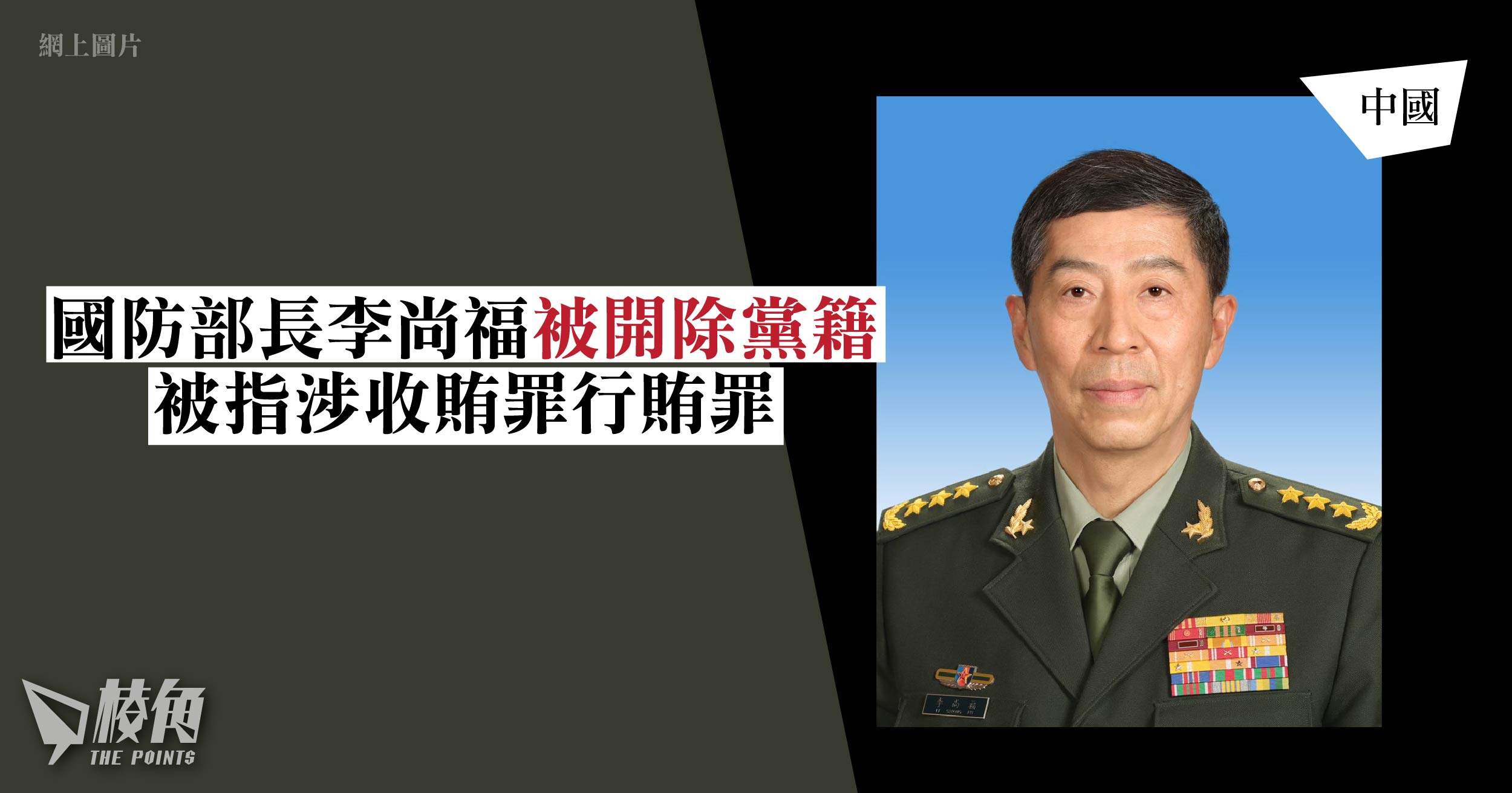 中國共產黨中央政治局周四(27日)舉行會議,就中央軍委審議調查原國防部長李尚福並通過報告,決定開除李尚福黨籍,並終止其二十大代表資格。報告指,李尚福指嚴重違反政治紀律,涉收賄罪及行賄罪,對高階領導幹部形象造成極大損害。