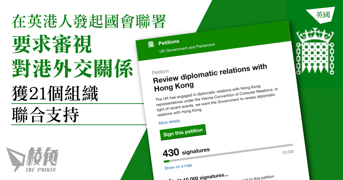 - 有在英港人發起國會聯署,要求審視英國與香港的外交關係
