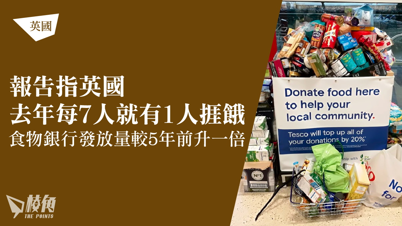 英國有慈善基金發表報告,指在 2022 年,英國大約有 1130 萬人曾面對捱餓問題,包括因生活成本高企無法負擔購買更多食物,因此減少用餐量,或因飢餓而體重減輕,人數相等於全國每 7 個人就有 1 個人曾面對食物不足問題。