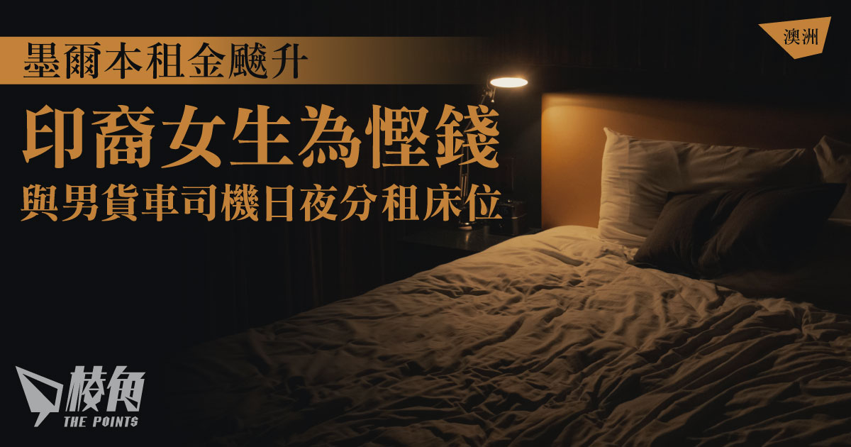 澳洲生活成本飛升,住屋開支令不少留學生失預算; 近日墨爾本出現名為「Hot-bedding」的共享租賃床位。有印度女留學生為省錢,與一名貨車司機共享一張床,他們日夜輪流使用床鋪,分擔每月550澳元租金。