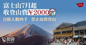 - 同樣擁有富士山登山步道的靜岡縣亦會在今夏限制夜間登山,不過就沒有徵收費用或設定登山人數上限,因此新收費及人數上限只適用於山梨縣一側的登山客