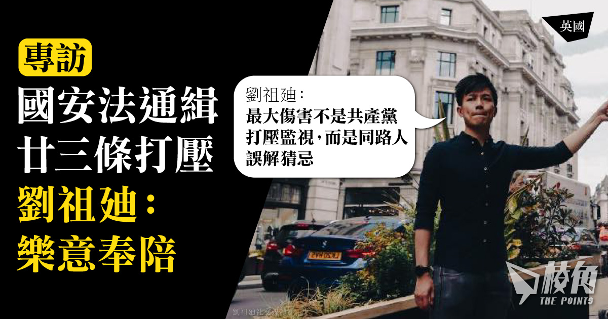 「攬炒巴」劉祖廸在過去一年頻繁出現在新聞報道裡,先有去年被香港政府以違反《國安法》而懸紅一百萬通緝,再到今年「612」五周年當日被港府以《基本法》廿三條取消其「特區護照」,在黎智英案的審訊過程中,又多次被人供稱他在運動中的參與程度。現已流亡英國的劉祖廸,沒有因為打壓愈來愈大而卻步,而是繼續積極地親身參與海外港人活動,包括集會、研討會、遊說等。