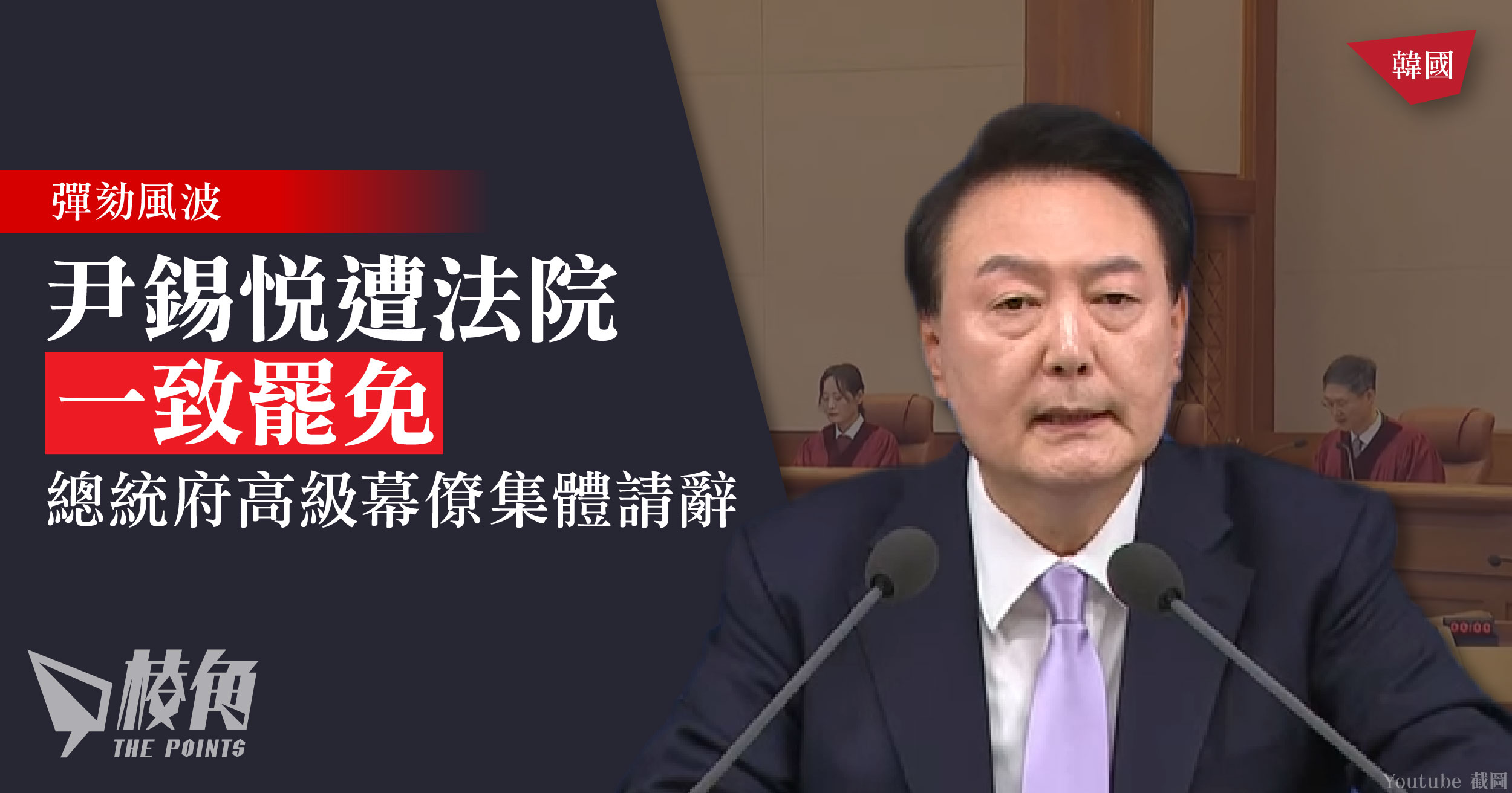 南韓憲法法院周五(4日)就去年12月總統彈劾案作出裁決,8名法官一致通過罷免總統尹錫悅,是繼朴槿惠後,韓國憲政史上第2位被罷免的總統。