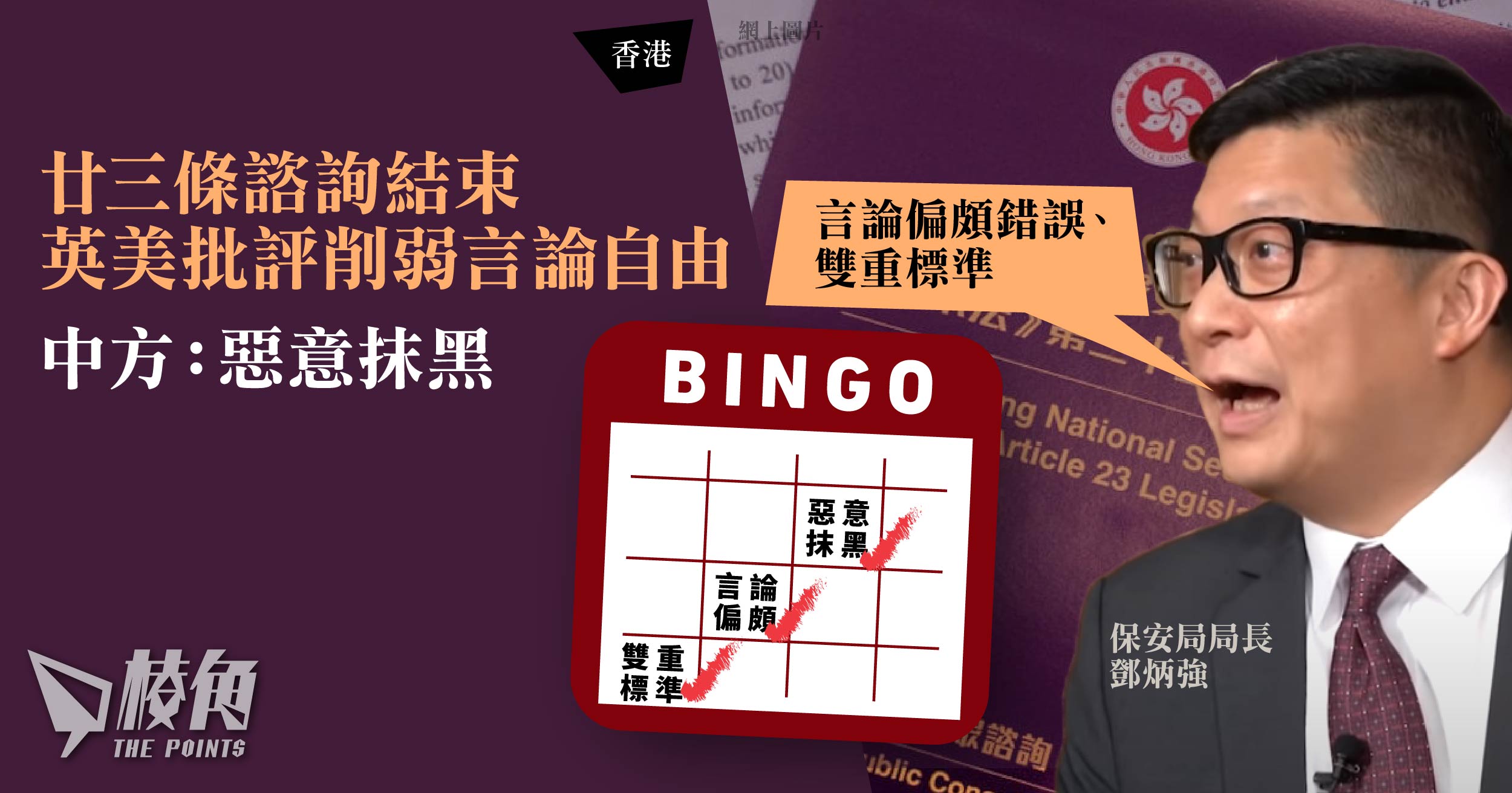 廿三條諮詢結束 英美批評削弱言論自由 中方:惡意抹黑