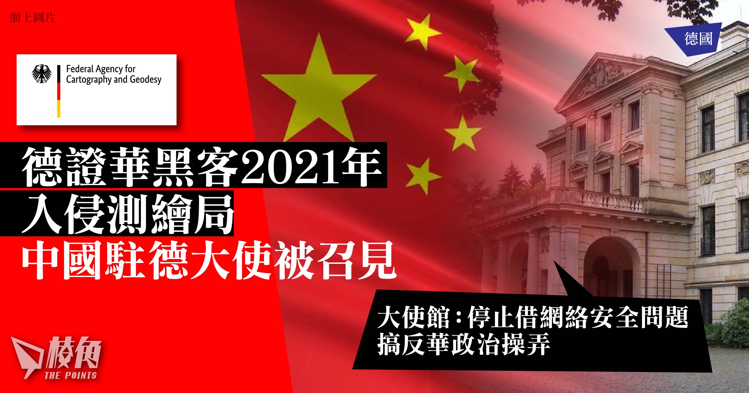 - 德國政府經調查發現,2021年有中國黑客攻擊土地測量及繪圖部門