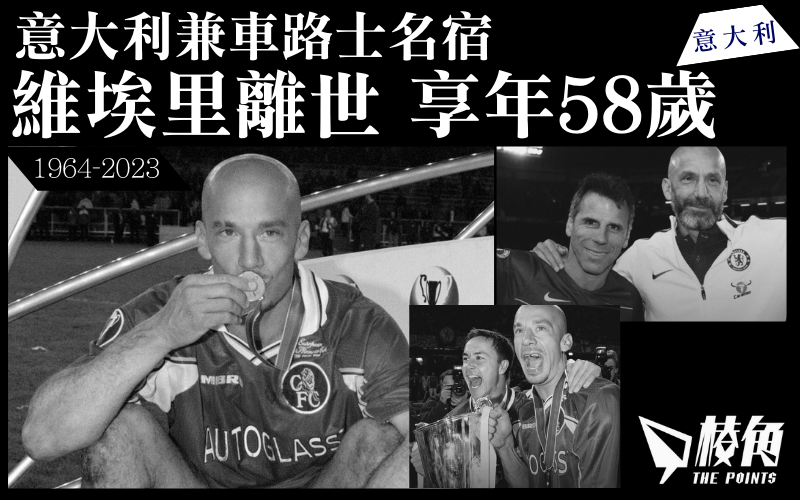 意大利兼車路士名宿 維埃里離世 享年58歲