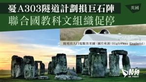 本月初,有保育團體向位於巴黎的教科文組織總部遞交了請願書,內含來自147個國家的超過22萬個聯署,敦促英國政府停止「破壞性」道路計劃。他們擔心,如果該計劃未經修改繼續實施,巨石陣可能會失去其世界遺產地位。