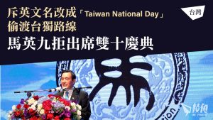 台灣前總統馬英九周一(10月2日)宣佈拒絕出席今年的雙十國慶大會。他表示,蔡英文政府將雙十國慶日的英文名改成「Taiwan National Day」,將「中華民國國慶日」變成「台灣國國慶日」,認為自己若再出席典禮,形同為繞彎、偷渡的台獨路線背書,因此拒絕出席。