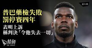 效力意甲勁旅祖雲達斯的法國球星普巴(Paul Pogba)於2月29日(周四)因早前藥檢失敗一案而被意大利反禁藥機構處分,判罰停賽四年,刑期直至2027年9月。由於今年3月將滿31歲的普巴,在刑滿後將接近35歲之齡,因此裁決對其職業生涯影響巨大,甚至有可能會提早退役。