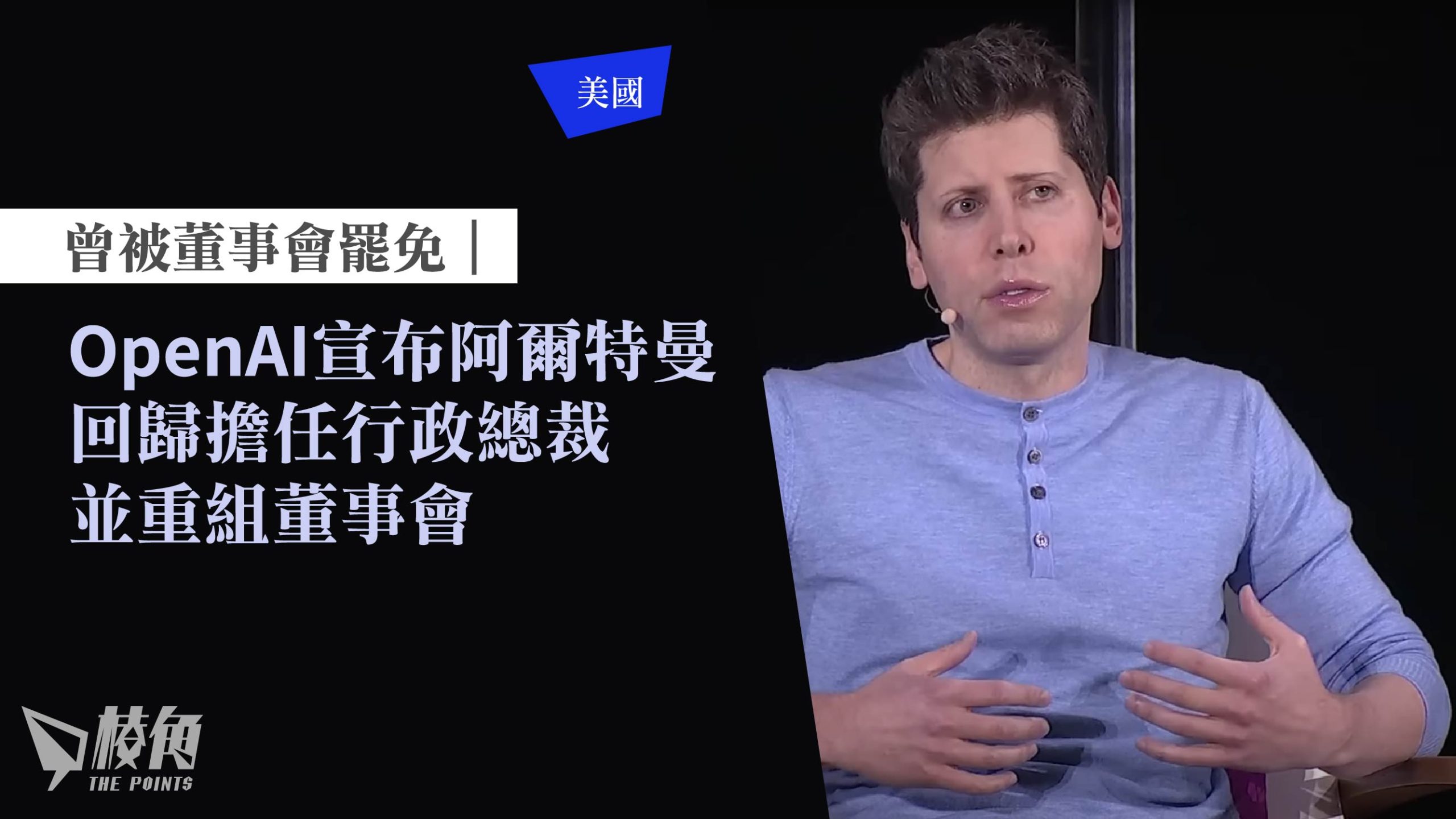 早前ChatGPT母公司OpenAI董事會罷免時任行政總裁阿爾特曼(Sam Altman),引發員工抗議,威脅轉投微軟。OpenAI周三(22日)在社交平台宣布,阿爾特曼將重返OpenAI擔任行政總裁,公司亦會籌組新的董事會。