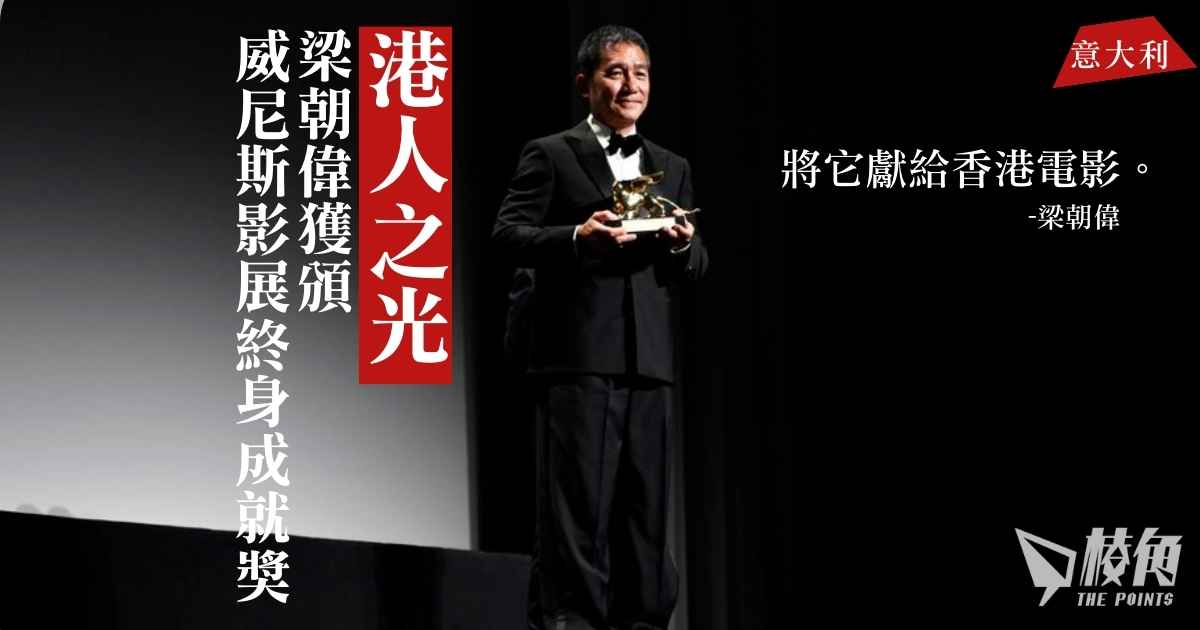 曾獲多個影帝獎項、演藝成就受到國際肯定的梁朝偉,榮獲第 80 屆威尼斯影展終身成就獎,是首位獲得此獎項的香港人及華人演員。他在李安手上獲得金獅獎座,發表感言:「感謝香港電影行業培養了我。我要把這個獎與 41 年來與我合作的所有人們分享,並把它獻給香港電影。謝謝。」