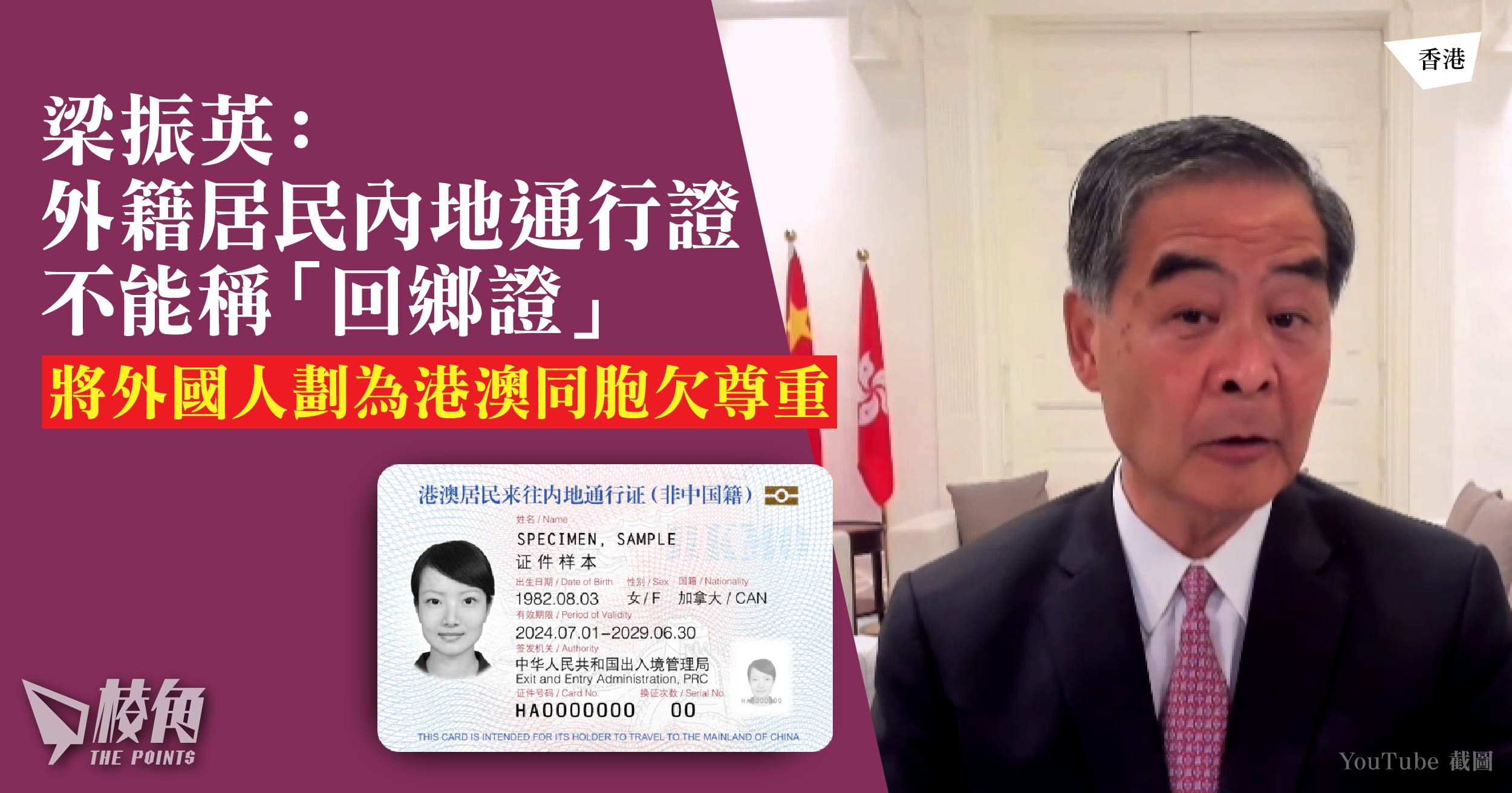 - 梁振英:外籍居民內地通行證不能稱「回鄉證」