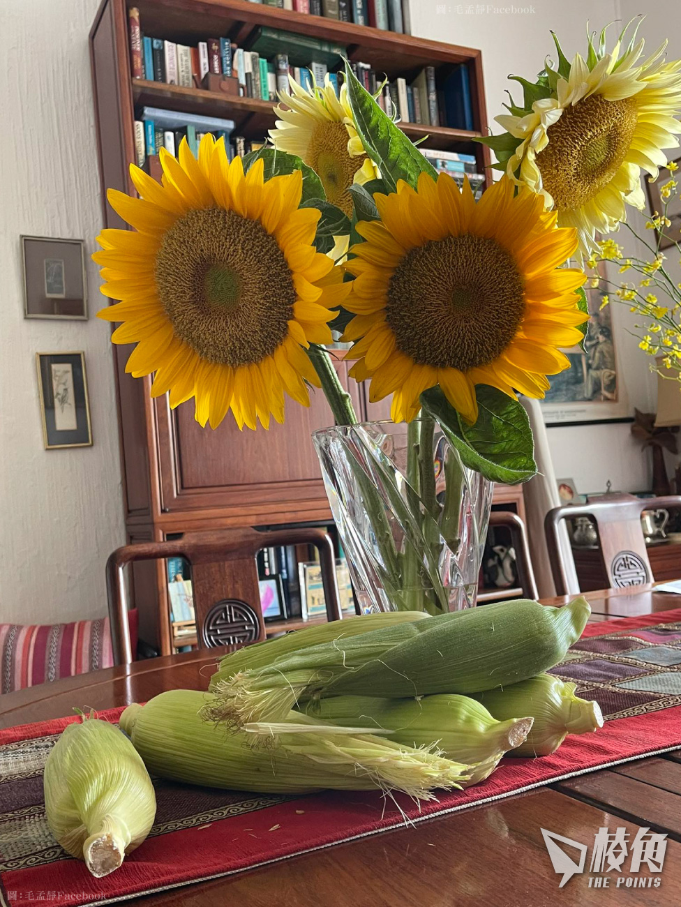 周二(6日)又再度更新Facebook專頁,展示餐桌上的向日葵和粟米,僅留言稱是來自農夫朋友,及「全部來自香港」。