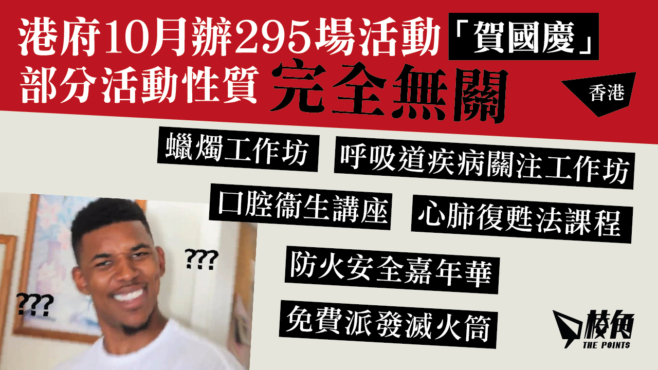 港府10月辦295項活動「賀國慶」 部分活動性質完全無關