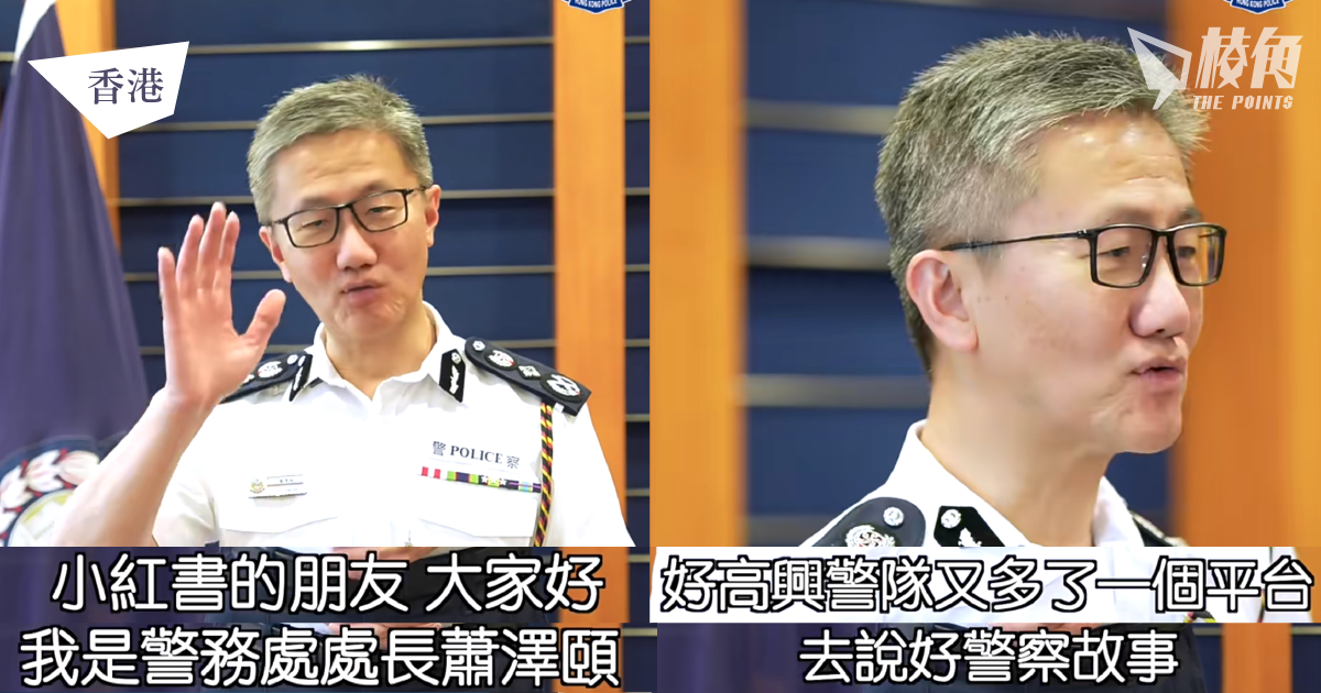 警方周二(20日)於官方微博宣布,在中國另一社交平台小紅書新開設帳號,以推廣警隊形象。平台首個帖文由警務處處長蕭澤頤「擔正」拍攝影片,他表示警隊有多一個平台「說好警察故事」,感到高興,同時預告本周六(24日)將推出新警隊宣傳片《守城前傳》。