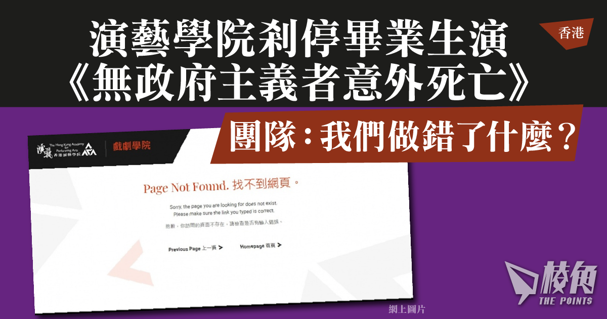 演藝學院剎停畢業生演《無政府主義者意外死亡》 團隊:我們做錯了什麼?