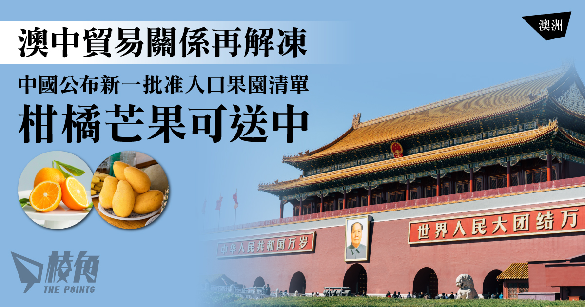 澳中貿易關係再解凍 中國公布新一批准入口果園清單 柑橘芒果可送中