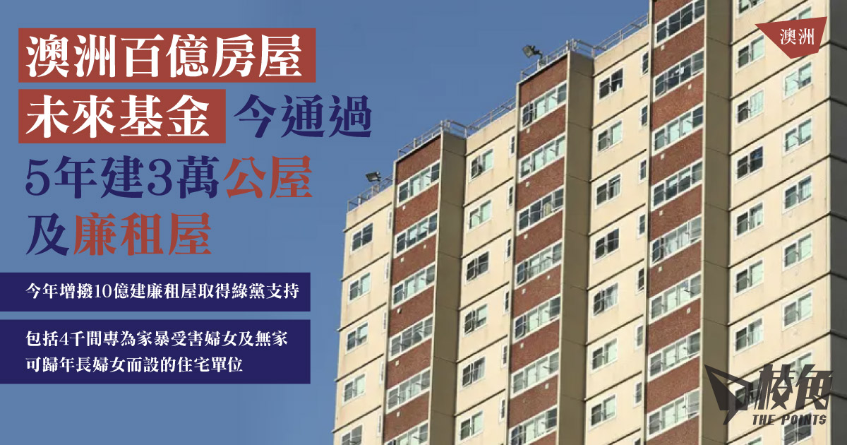 澳洲百億房屋未來基金今通過 5年建3萬公屋及廉租屋