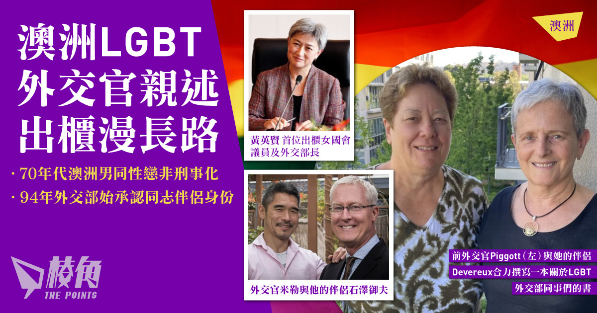 澳洲是一個文化多元的國家,但在文化、宗教、性傾向等的共融,也經歷漫長道路,尤其是性向平權,即使在政府部門工作,LGBTQ的人士多年來的處境也不容易。最近一名前外交官與伴侶訪問多名LGBTQ的外交官,講述在澳洲外交貿易部從在衣櫃內走出來的經歷。