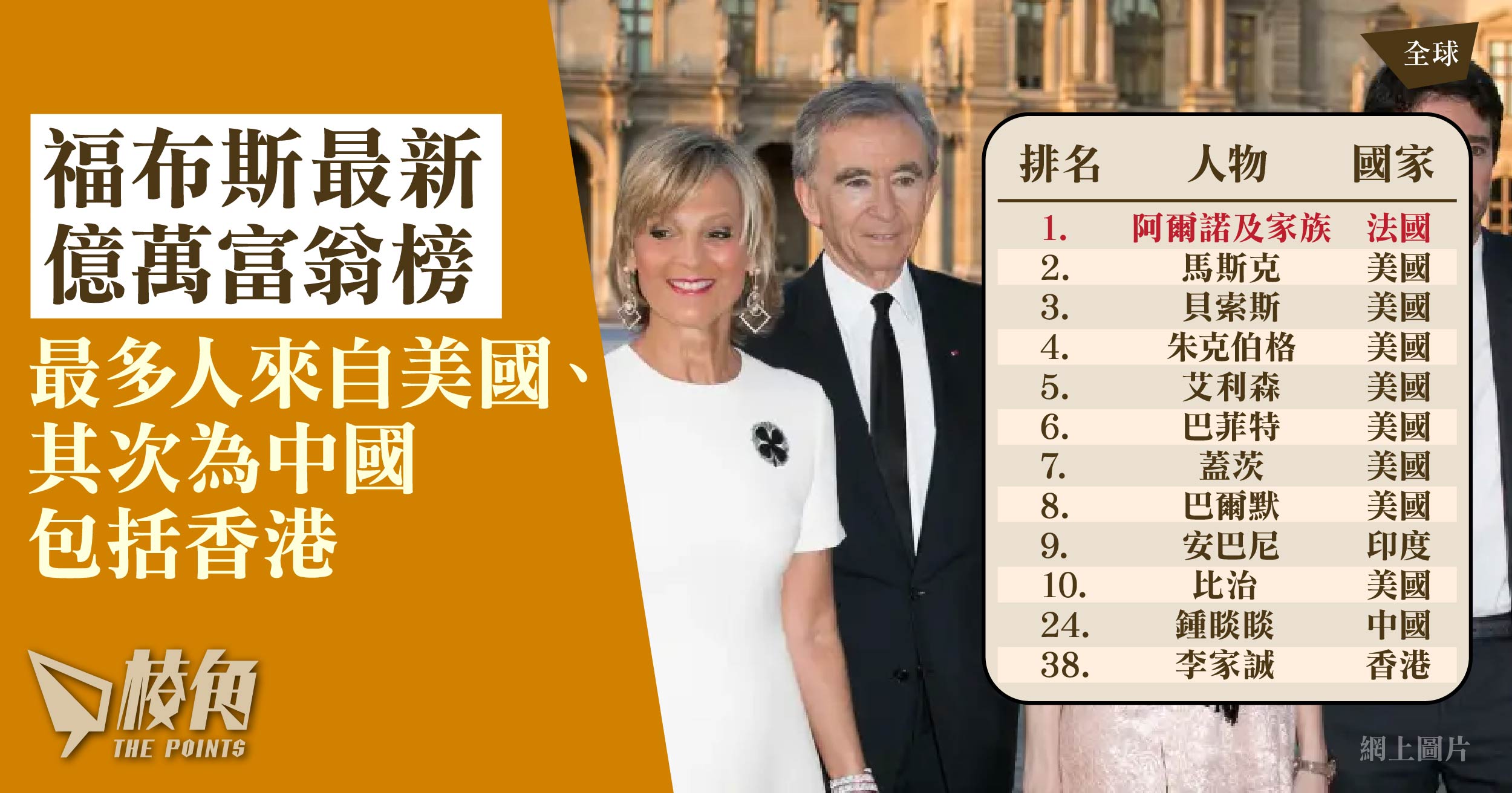 - 福布斯公布最新億萬富翁排行榜,人數達2781人創歷史新高