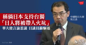 中國駐日大使吳江浩於周一(5月20日)在中國駐日大使館舉辦的一場座談會上,稱日本國會議員組團赴台北參加當天舉行的賴清德總統就職典禮是「公然助長台獨勢力」,並說道:「如果日本將自己綁上分裂中國的戰車,日本民眾將被帶入(戰爭)火坑。」吳江浩的言論在日本引發爭議,有日本眾議員就認為吳的言論冒犯,呼籲日本政府將其驅逐出境。