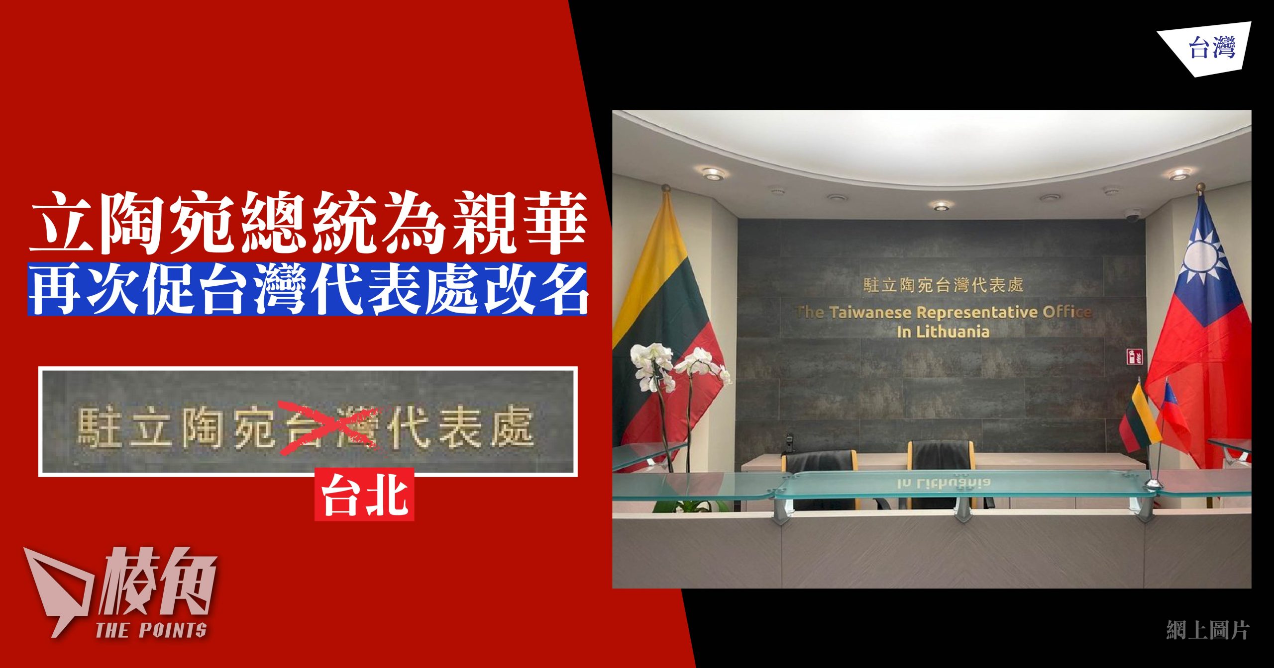 - 立陶宛總統瑙塞達促「駐立陶宛台灣代表處」,由「台灣」(Taiwanese)改名為「台北」(Taipei)