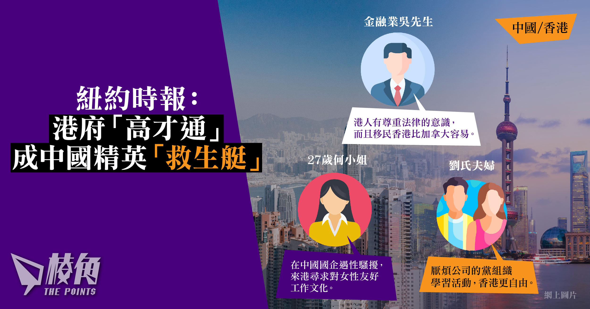 - 《紐約時報》發表專題報道,拆解中國人借「高才通」來港原因