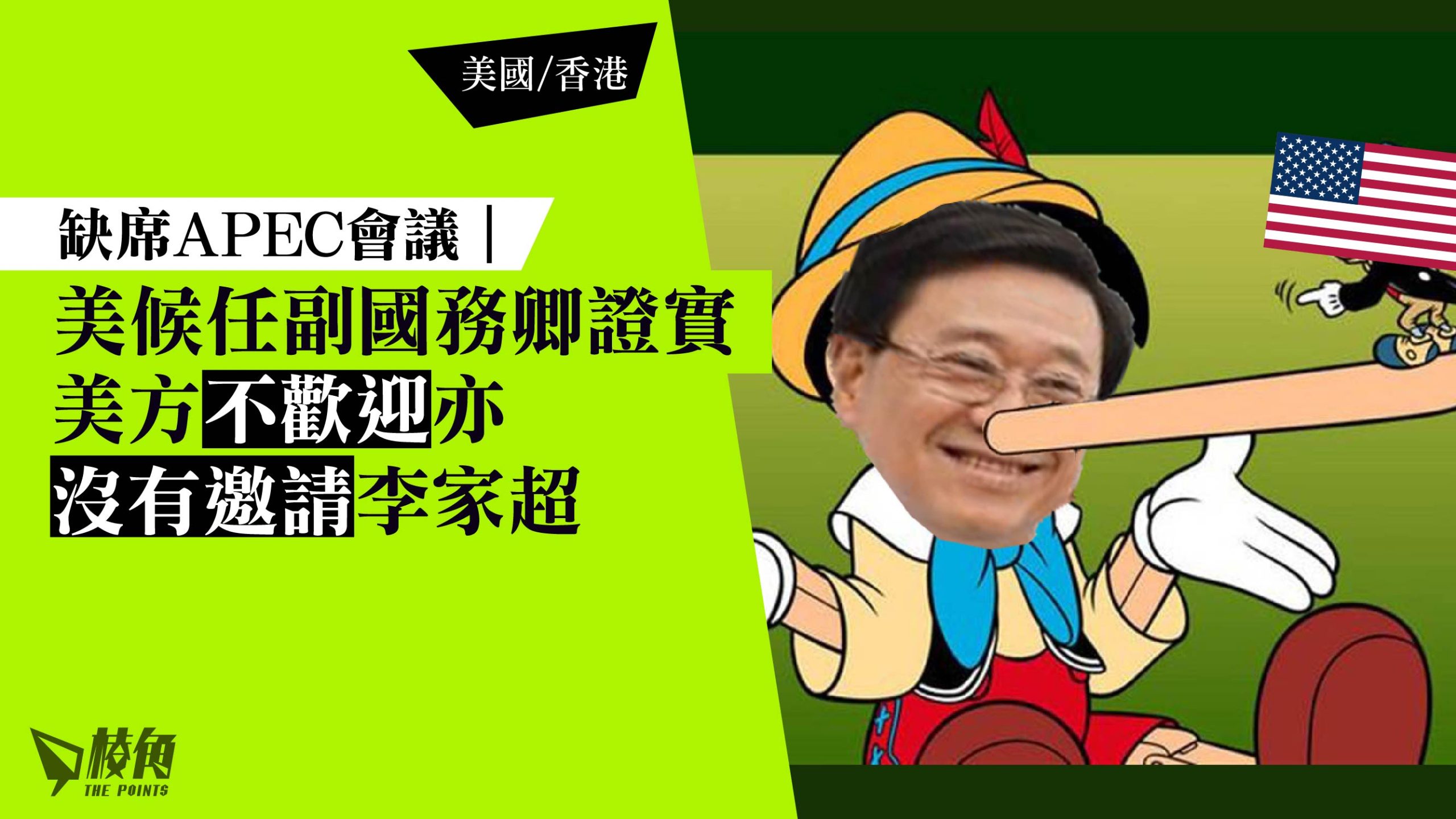 缺席APEC峰會| 美候任副國務卿證實 美方不歡迎亦沒有邀請李家超