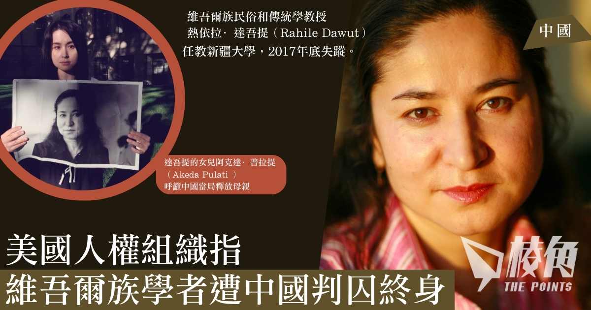美國人權組織「中美對話基金會」(Dui Hua Foundation)報導稱,於2017年失踪的著名維吾爾族學者熱依拉·達吾提(Rahile Dawut)被中國政府以「危害國家安全」的罪名判處終身監禁。達吾提曾提出上訴,但法院仍然維持原判。中國外交部發言人毛寧在被問及此案時表示,她「不掌握」此案的相關信息,但她補充稱,中國將「依法辦案」。